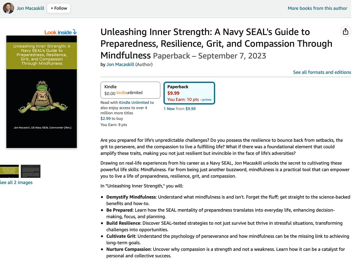 I'm thrilled to announce that my short book/e-book, "Unleashing Inner Strength: A Navy SEAL's Guide to Preparedness, Resilience, Grit, and Compassion Through Mindfulness," is now available on Amazon in paperback and Kindle versions!