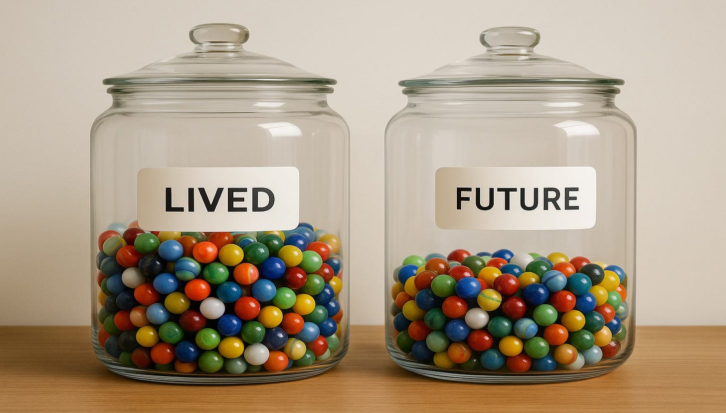 It’s a visual reminder that time isn’t abstract — it’s something you hold, move, and spend. The goal isn’t to be afraid of the marbles running out. It’s to make each one mean something.